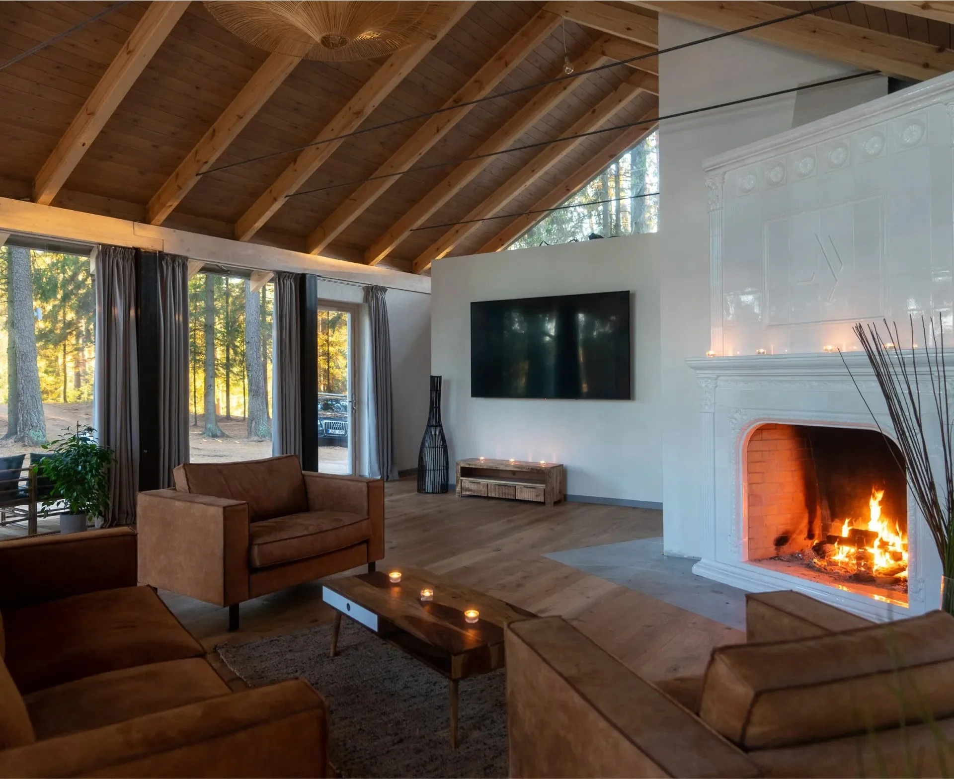 Das Anwesen umfasst mehrere Häuser, die liebe- und geschmackvoll eingerichtet sind. Die gemütlichen Räume bieten viel Platz für gemeinsames Beisammensein, aber auch für den persönlichen Rückzug. Ein lichtdurchfluteter Yoga- und Meditationsraum sowie eine White-Smoke-Sauna inmitten der Natur schaffen eine Umgebung, in der Entschleunigung ganz natürlich geschehen darf.